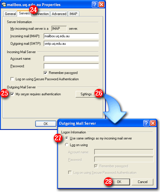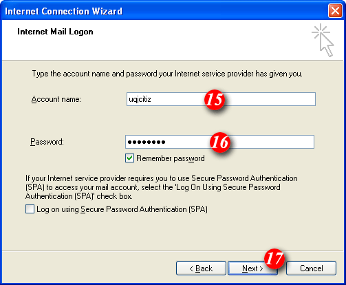 | 11)'My incoming mail server is a .. ' should be set to POP3 (default setting). | |||||