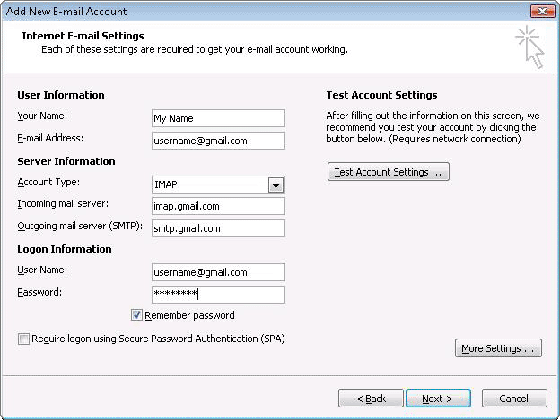 10) Select an account, and click Change above the list of accounts. Click More Settings, then the Advancedtab.
