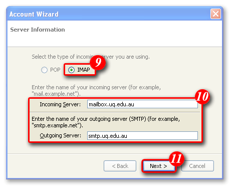 | 10)Enter 'mail.guinninvestments.com' in the 'Incoming Server' field, and 'smtp.guinninvestments.com' in the 'Outgoing Server' field. |